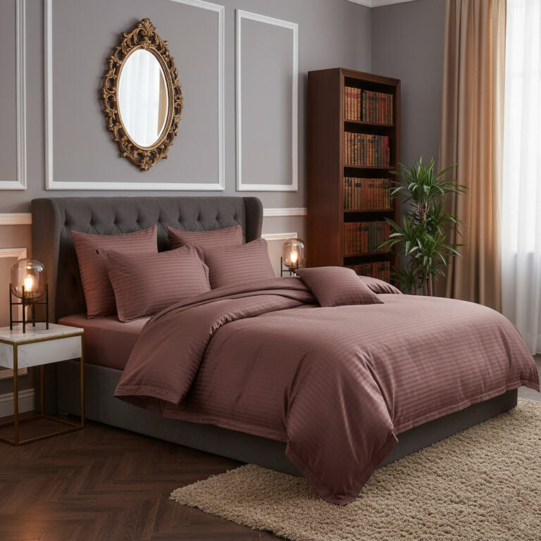 Lenjerie pat 100% bumbac damasc, maro